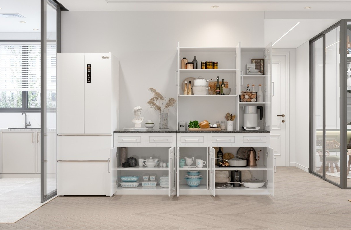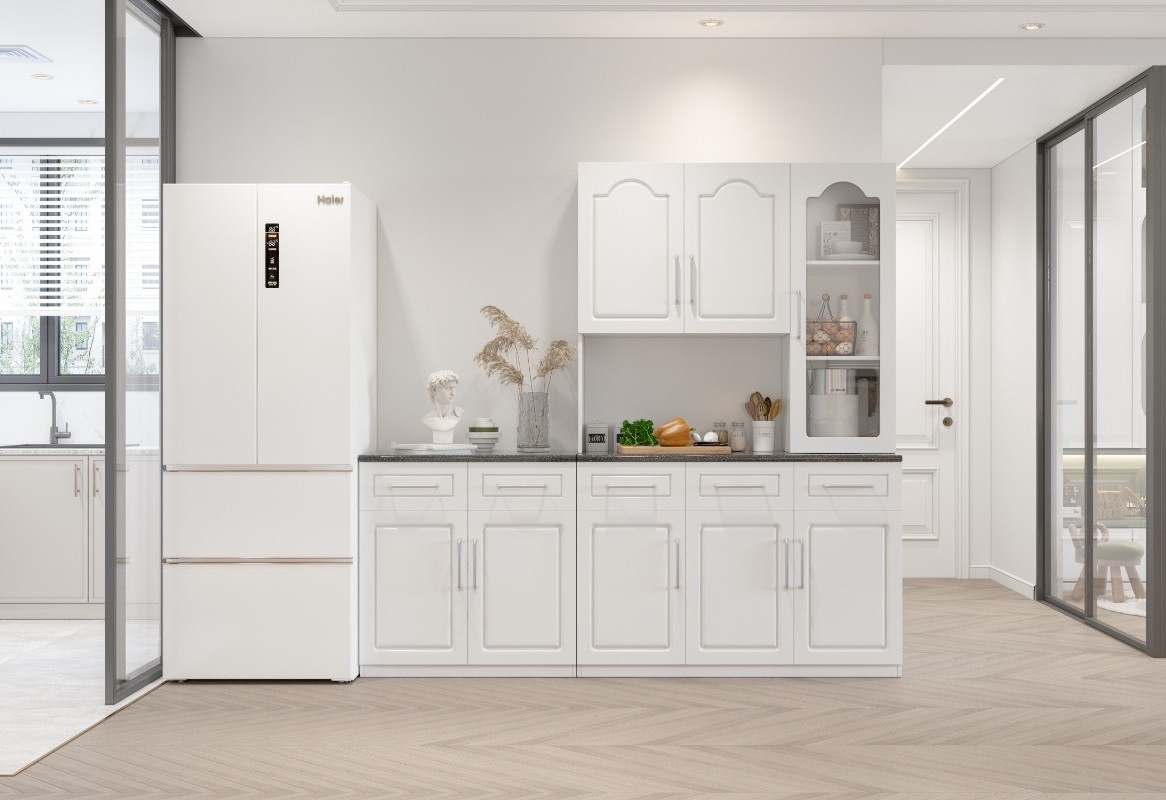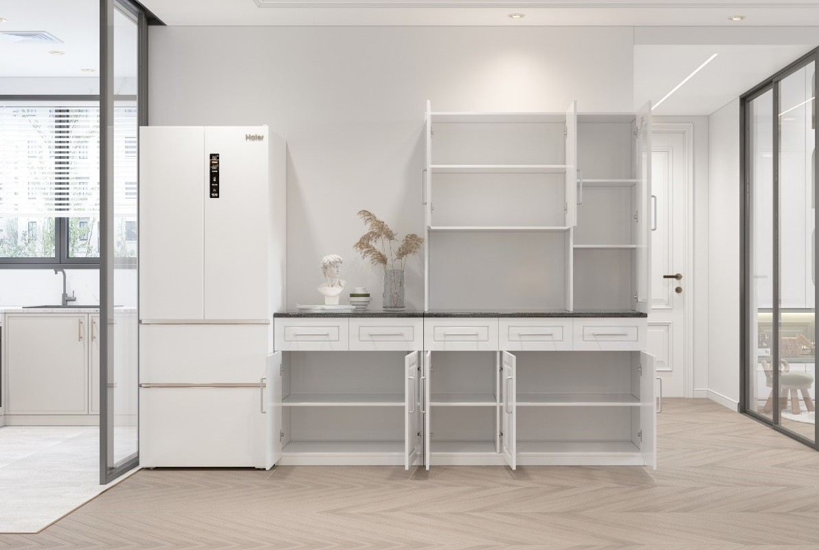 Set de mobilier pentru bucătărie, realizat integral din MDF, cu design modern și dimensiuni compacte, potrivit pentru spații reduse și utilizare eficientă.