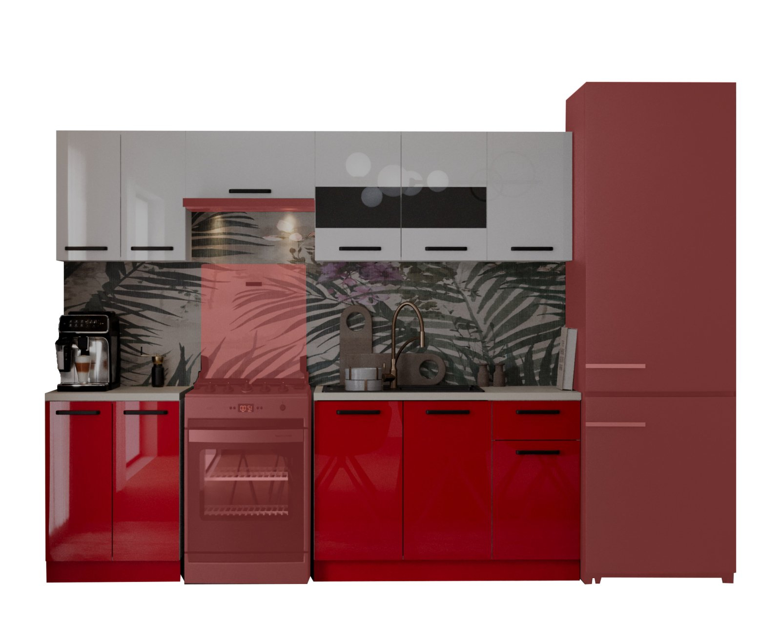Bucatarie Petra, 240x60x200cm, Alb+Rosu