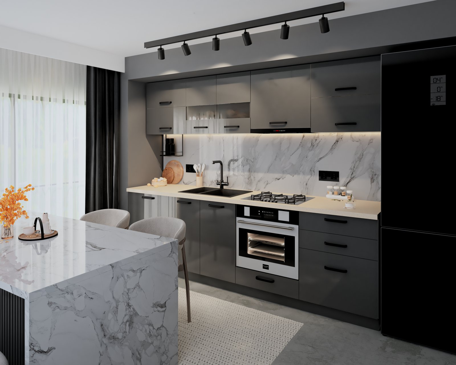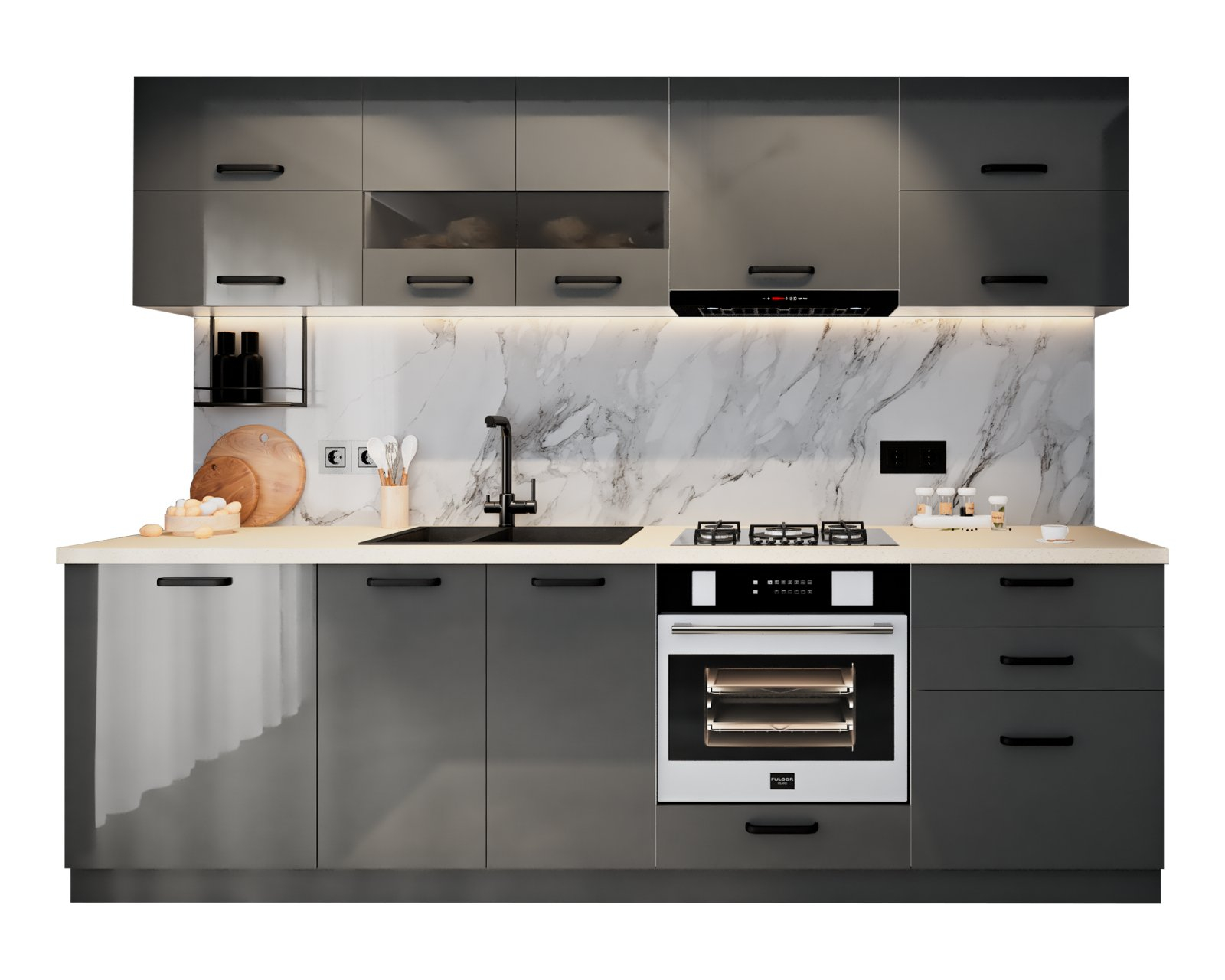 Bucatarie Petra MDF,V1 260x60x200cm, Antracit