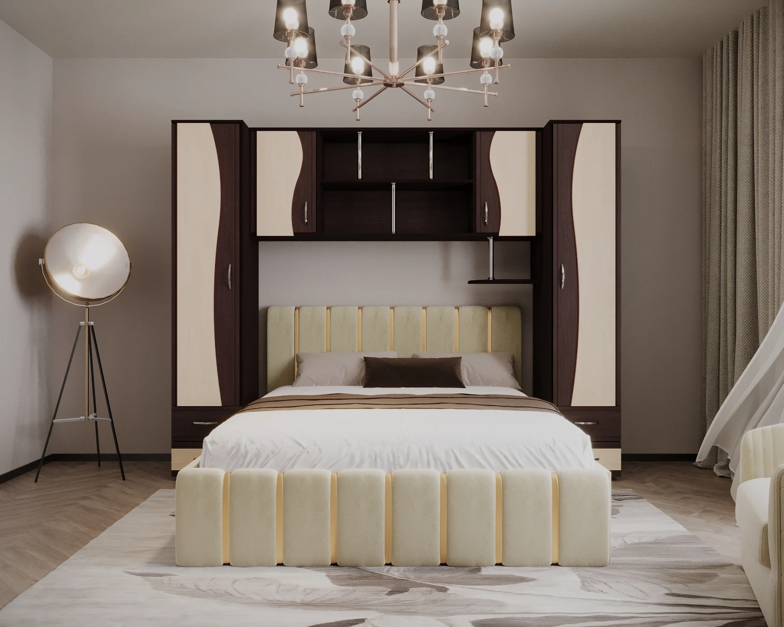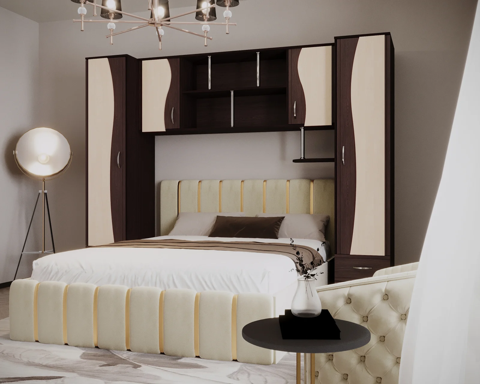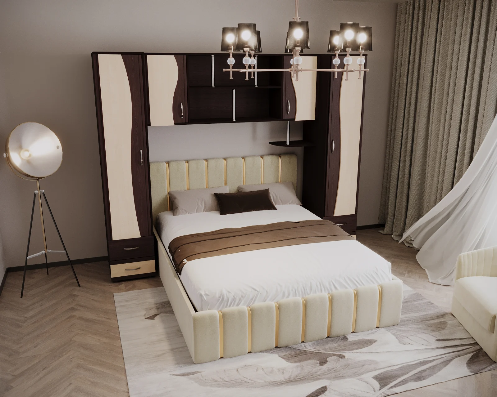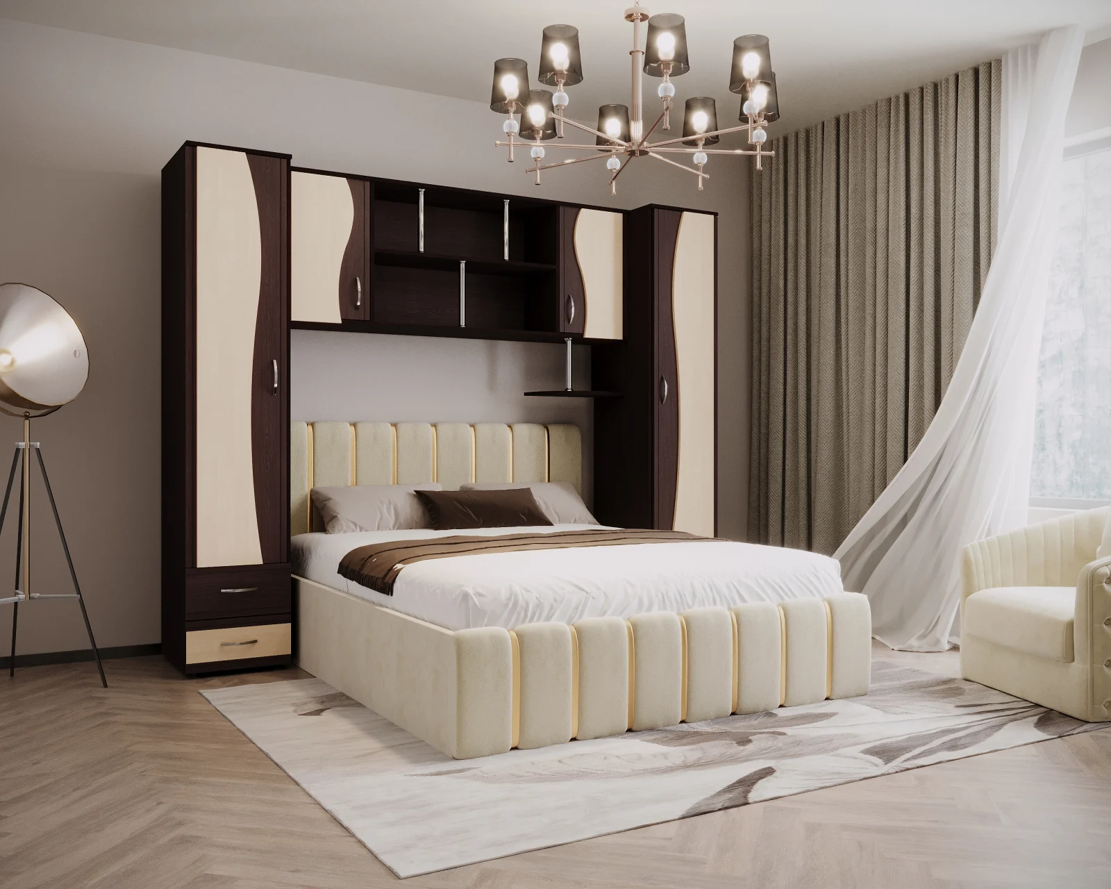 Set mobilier dormitor, realizat din PAL melaminat, cu design contemporan și compartimentare practică, potrivit pentru dormitor.