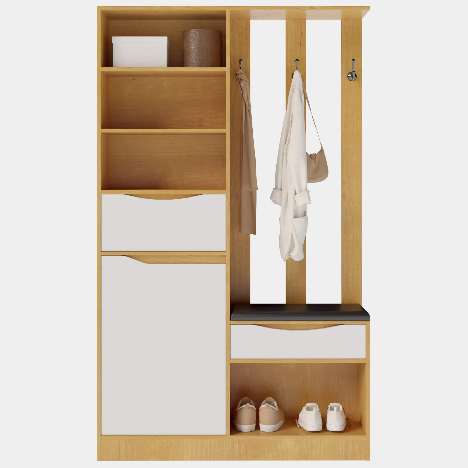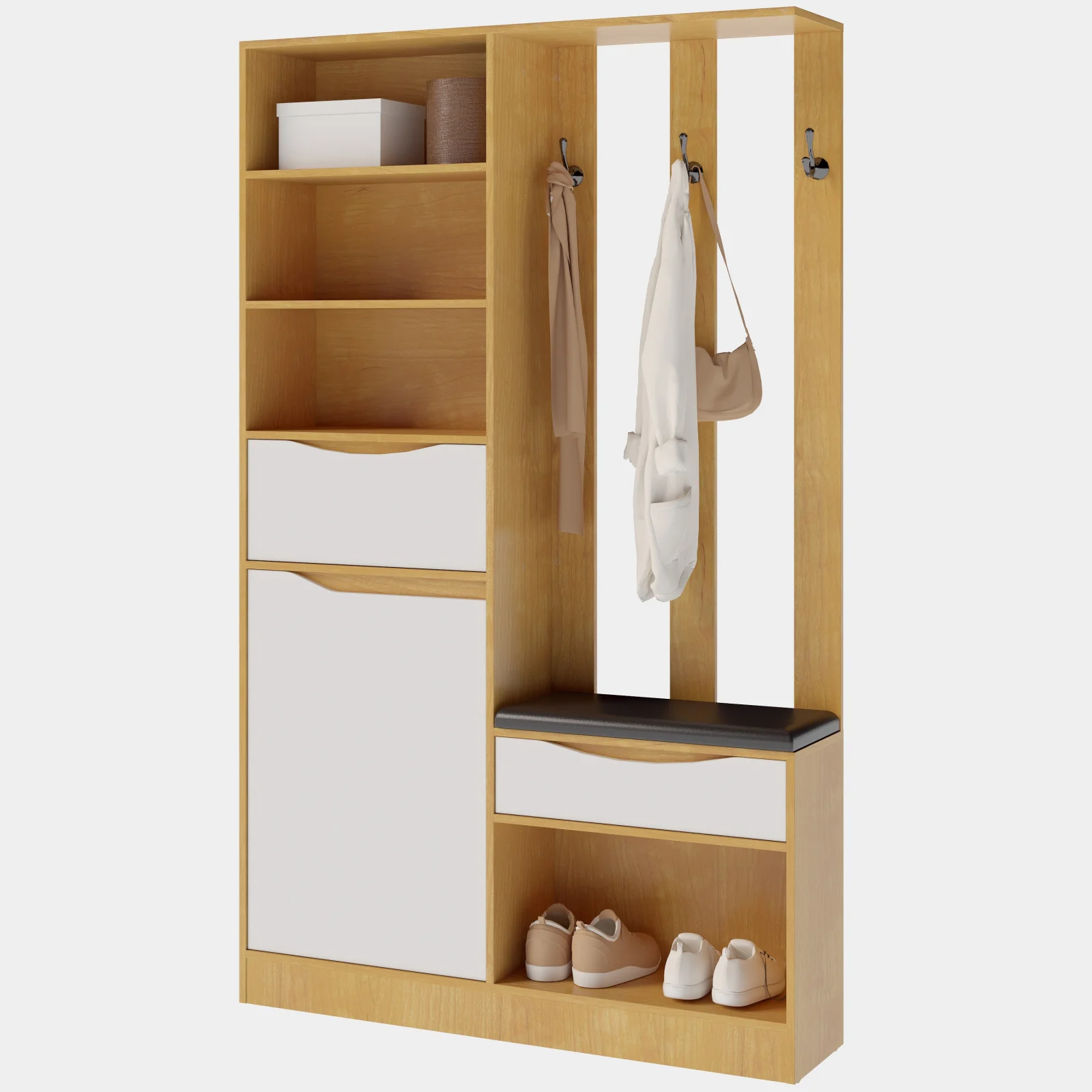 Cuier pentru hol, realizat din PAL melaminat, cu design contemporan și structură practică, potrivit pentru organizarea eficientă a spațiului de la intrare.