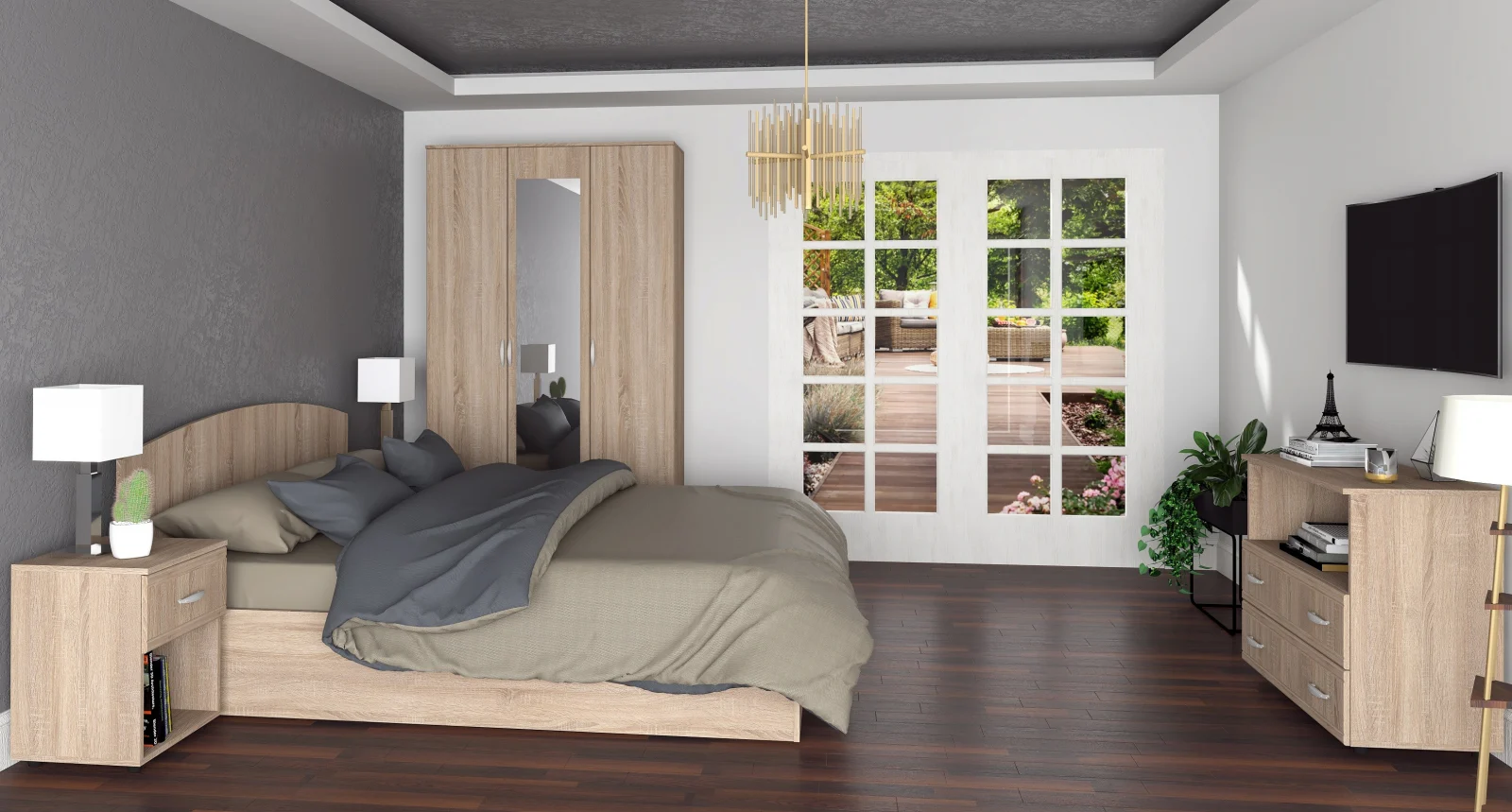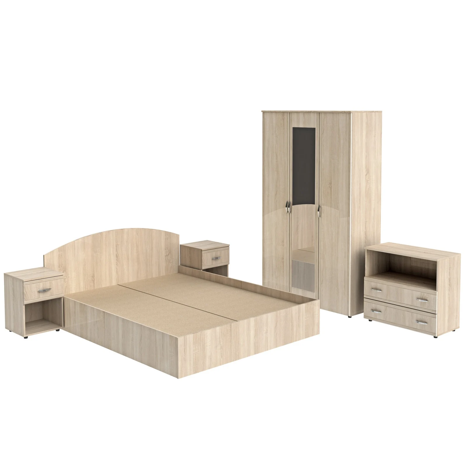 Set dormitor Florin realizat din PAL melaminat, cu design contemporan si fronturi frezate tip Soft. Ofera spatii practice pentru depozitare si organizare.