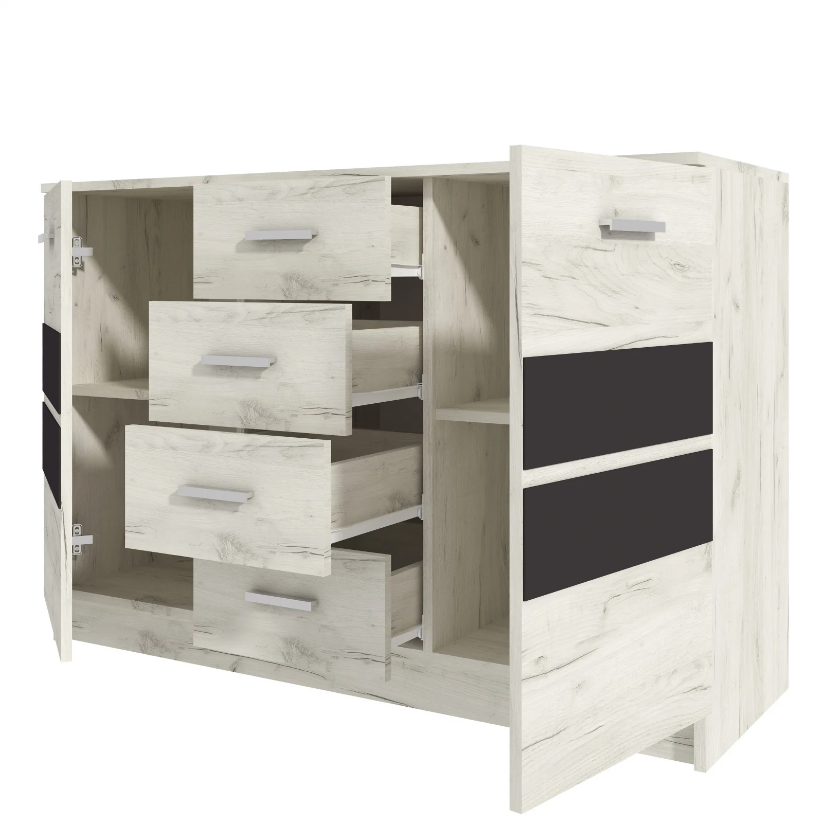 Produsul se livreaza neasamblat, in pachete, impreuna cu schita de montaj si feroneria necesara. Pretul include doar mobilierul, elementele de decor nu sunt incluse.