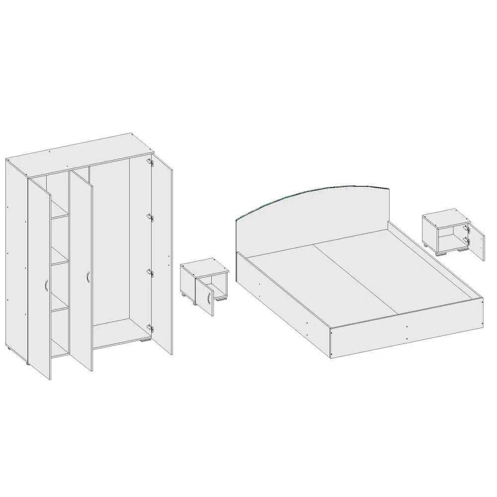 Set de mobilier pentru dormitor, realizat din PAL melaminat, cu design contemporan și finisaj în combinație Wenge și Alb. Setul este conceput pentru amenajarea funcțională a dormitorului, incluzând piesele esențiale pentru odihnă și depozitare, într-o structură compactă.
