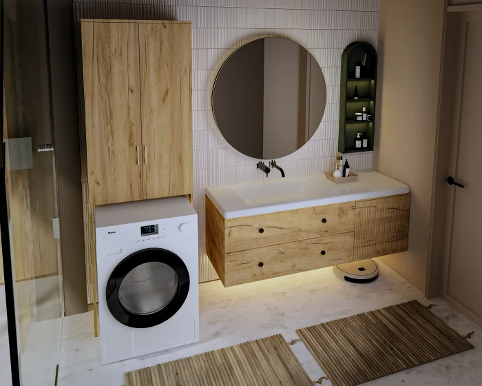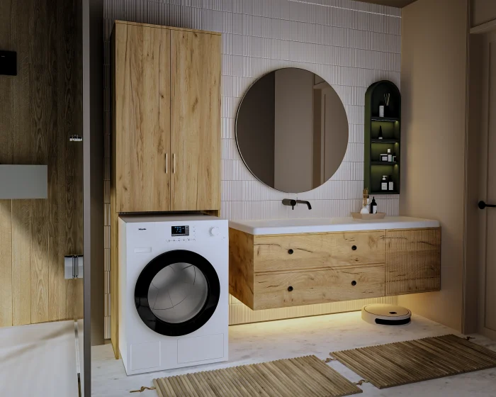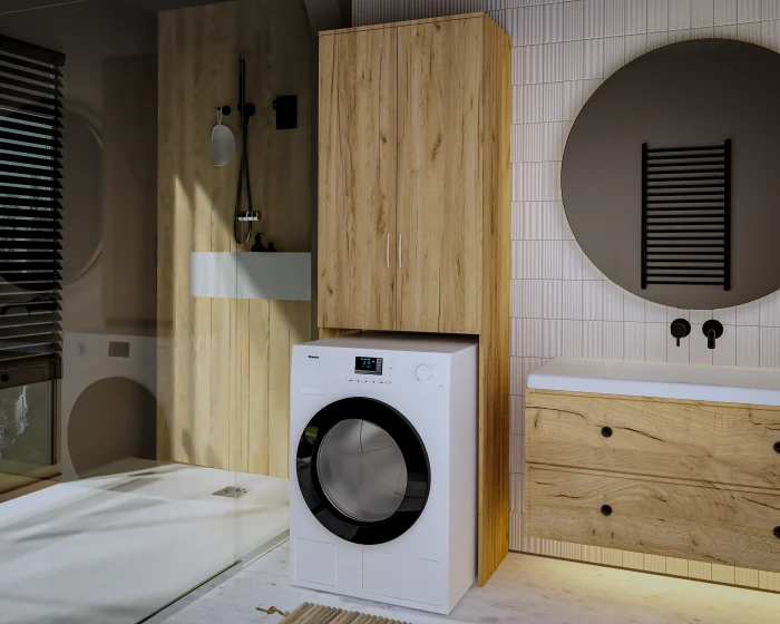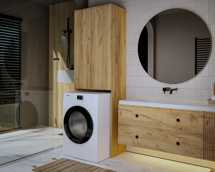 Dulap modern, cu design practic și spațiu eficient de depozitare, prevăzut cu polițe fixe și mobile pentru organizare optimă.