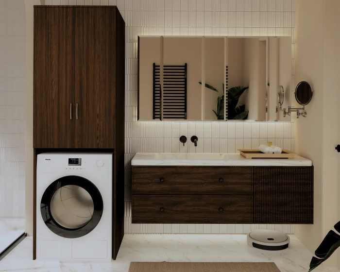 Dulap modern, cu design practic și spațiu eficient de depozitare, prevăzut cu polițe fixe și mobile pentru organizare optimă.