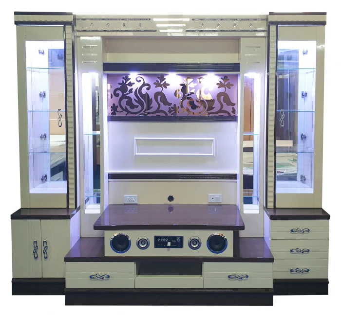 Set mobilier living conceput pentru un ambient elegant și funcțional. Include iluminare LED, elemente din sticlă și sistem audio integrat, oferind un plus de stil și tehnologie spațiului tău.