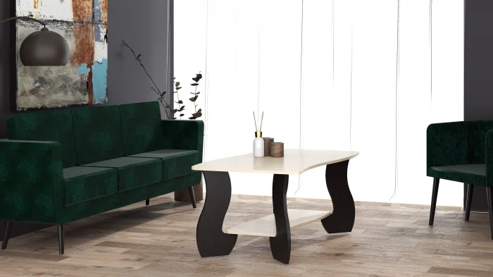 Masă de cafea pentru living, cu design contemporan și formă asimetrică, potrivită pentru utilizare zilnică.