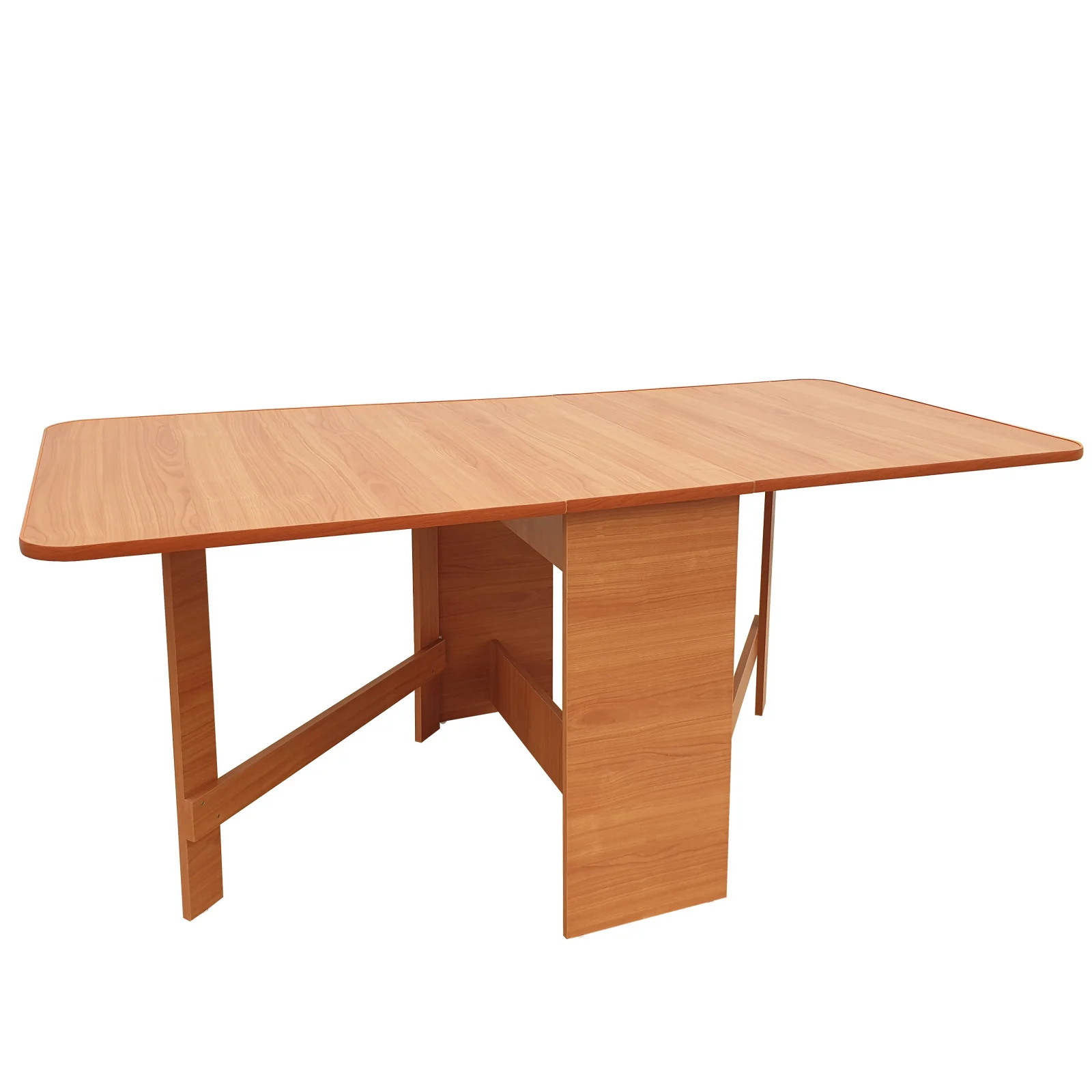 Masă pliantă cu design contemporan, practică și versatilă, realizată din pal melaminat, ideală pentru bucătărie sau living. Dimensiunea mesei poate fi ajustată cu ușurință prin ridicarea uneia sau a ambelor părți laterale, în funcție de necesități, acestea fiind susținute de un cadru din pal prevăzut cu balamale pentru o manevrare facilă.
