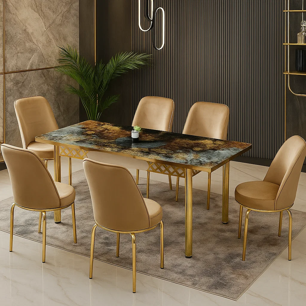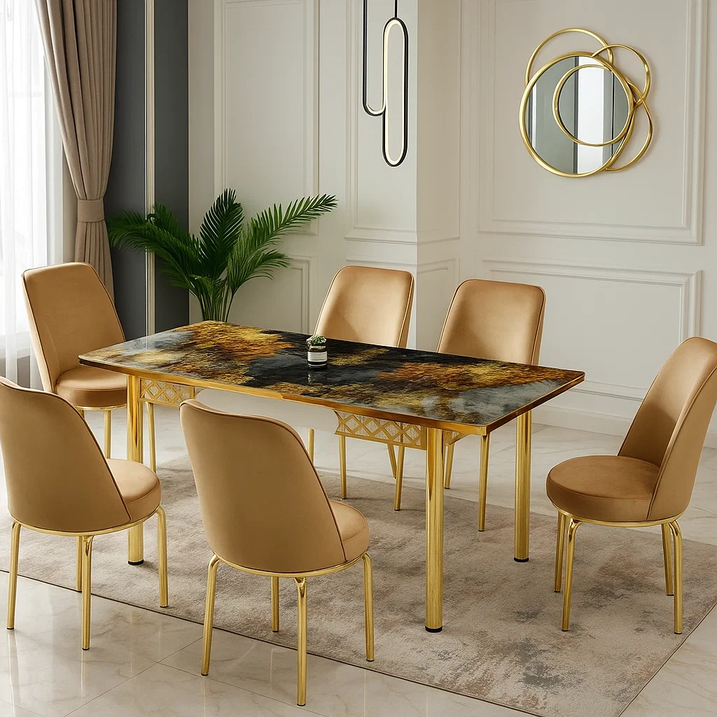 - Dimensiuni Scaune: 6 x scaune tapitate 42x44x92cm