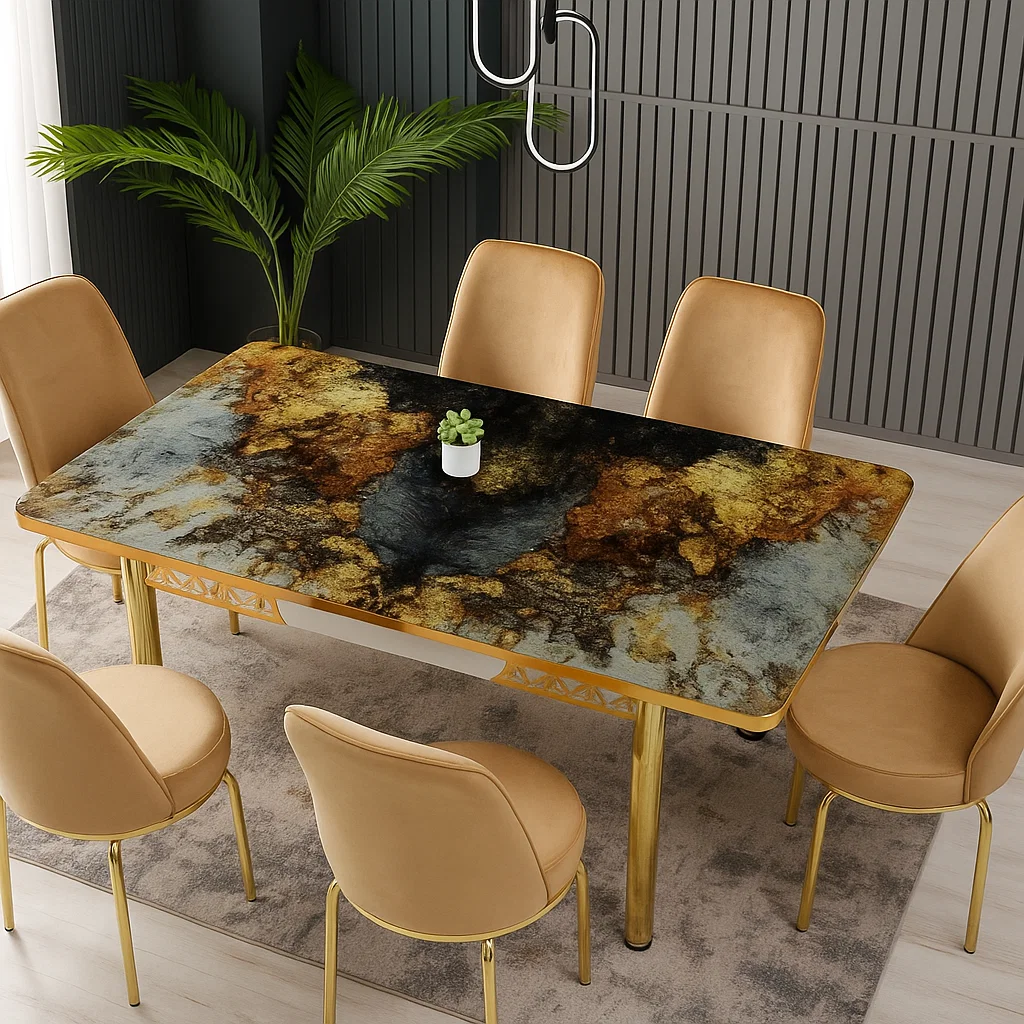 Acest set de masă extensibilă cu 6 scaune este ideal pentru bucătăria sau sufrageria ta. Masa are un cadru metalic robust și un blat din PAL acoperit cu sticlă securizată, ceea ce o face rezistentă și ușor de curățat. Sticla securizată adaugă un plus de eleganță și siguranță. Masa este extensibilă, așa că o poți mări atunci când ai musafiri sau când ai nevoie de mai mult spațiu.