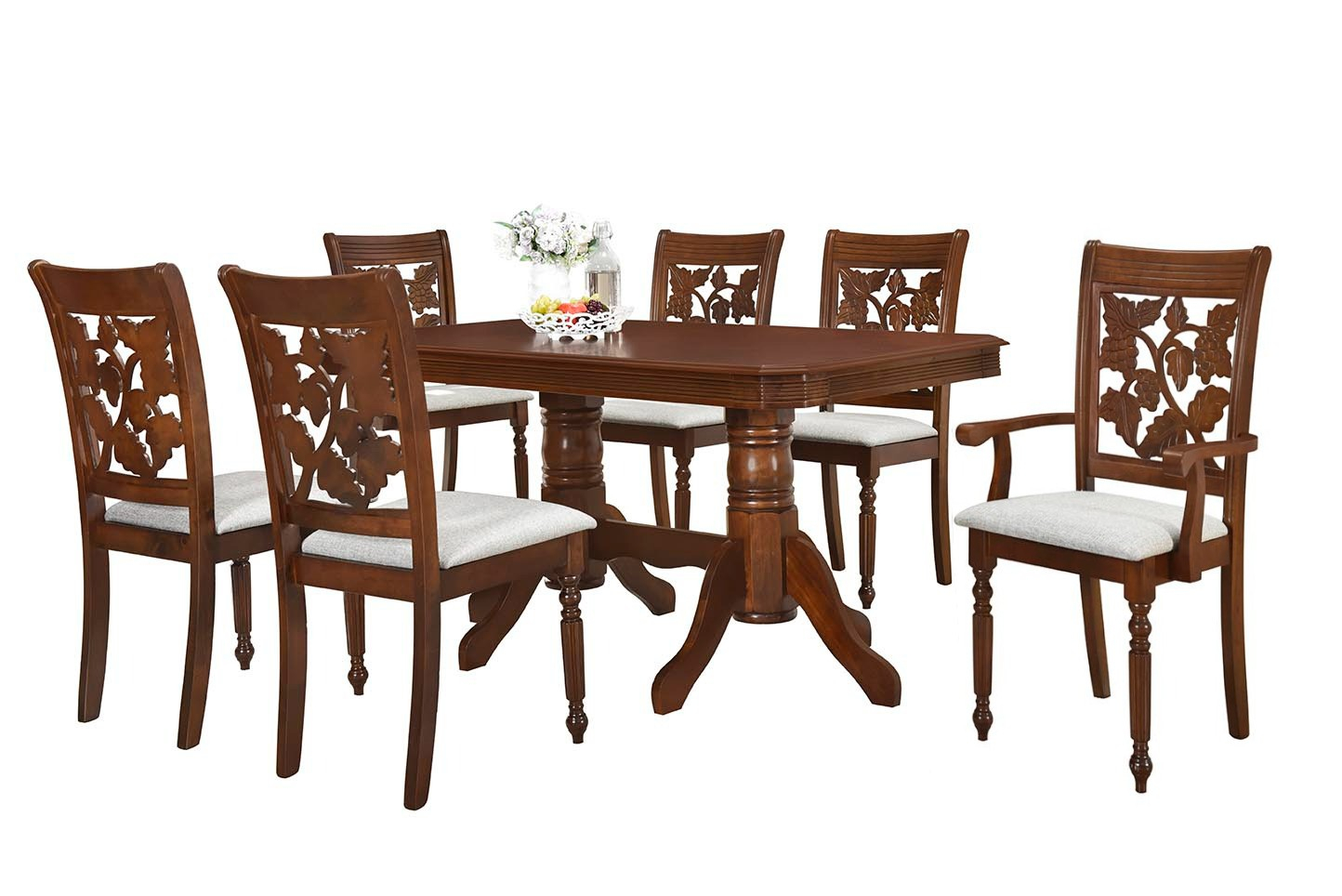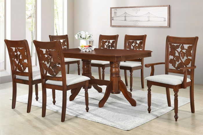 Set masă RH7074 cu 6 scaune RH8030C / RH8030CA, cu design elegant și construcție solidă, potrivit pentru living sau bucătărie. Masa dreptunghiulară, cu colțuri tăiate, este rezistentă și ușor de întreținut, iar scaunele tapițate oferă confort sporit.