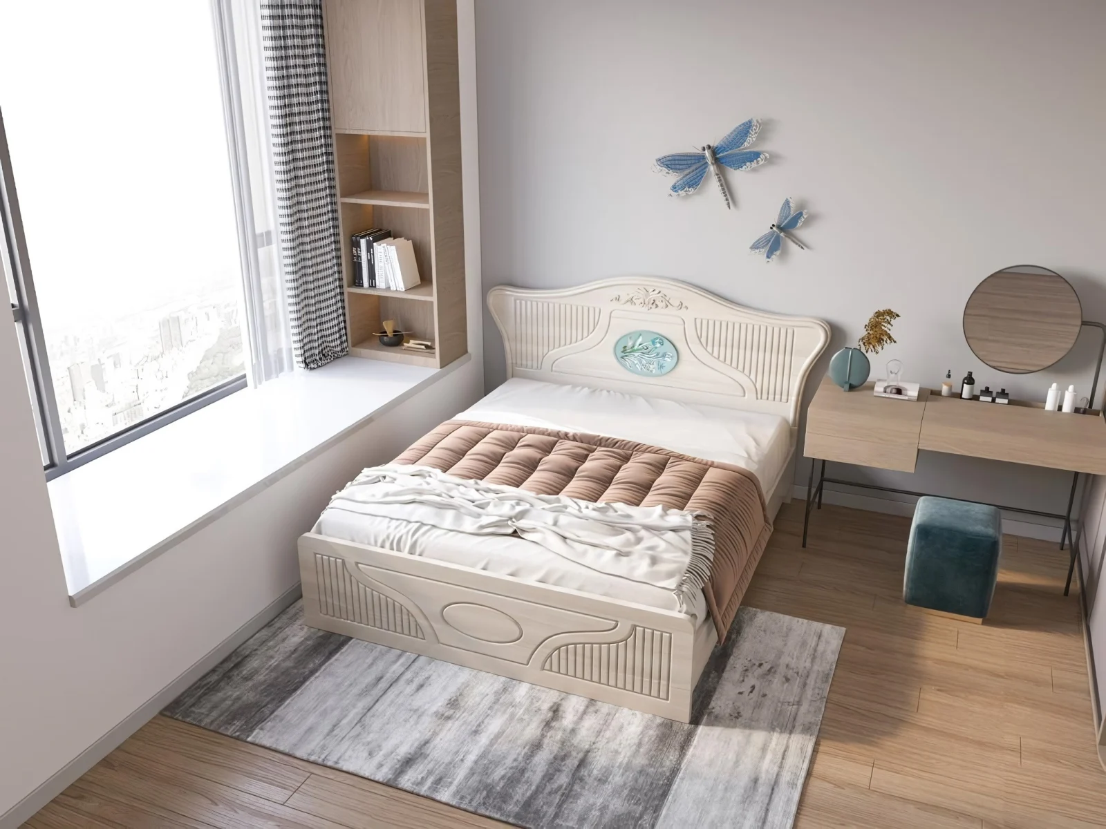 Pat ZQB812, cu design modern și structură solidă, realizat din MDF infoliat, potrivit pentru dormitor. Construcția robustă asigură stabilitate și confort în utilizare.