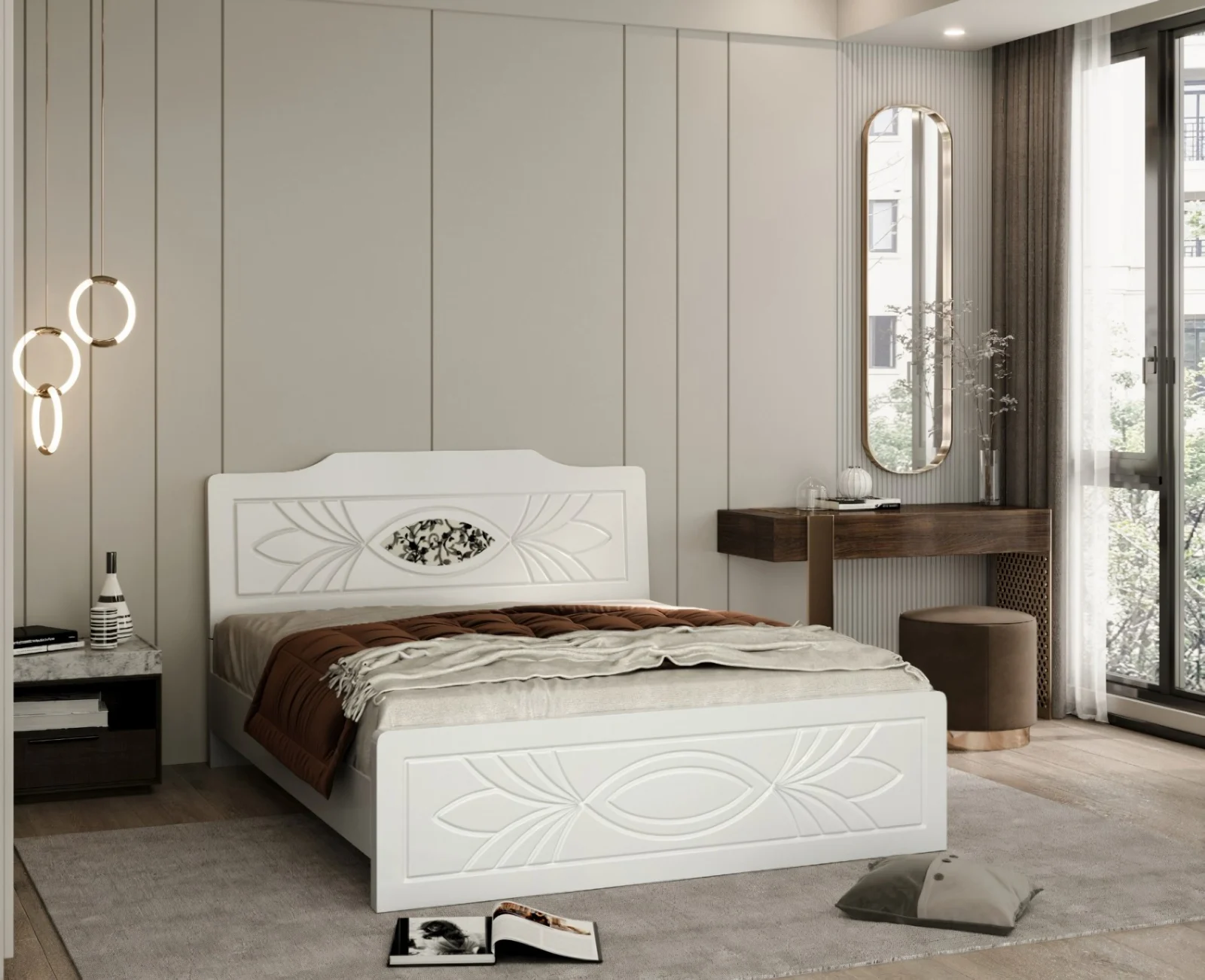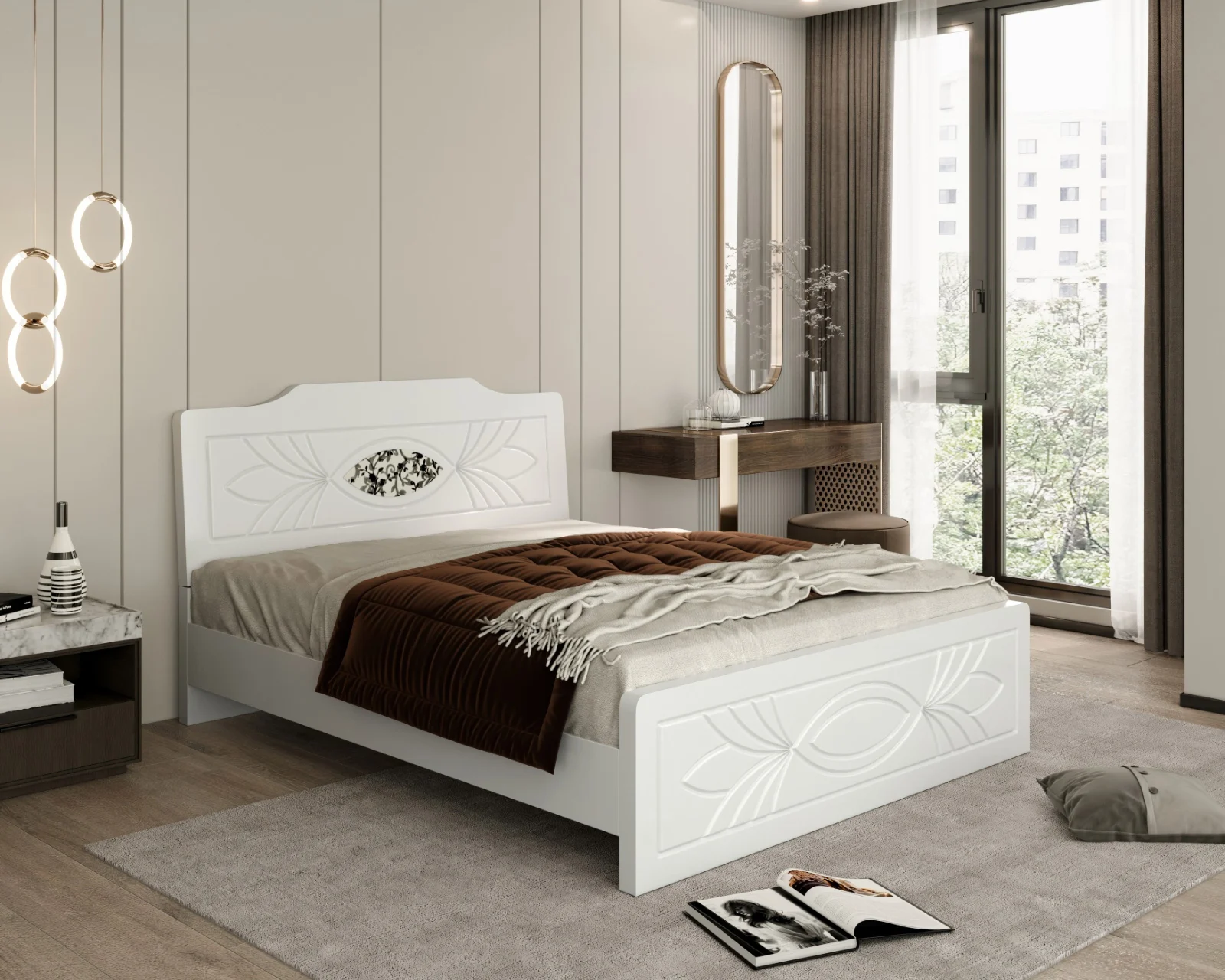 Pat ZQB813, cu design modern și structură solidă, realizat din MDF infoliat, potrivit pentru dormitor. Construcția robustă asigură stabilitate și confort în utilizare.