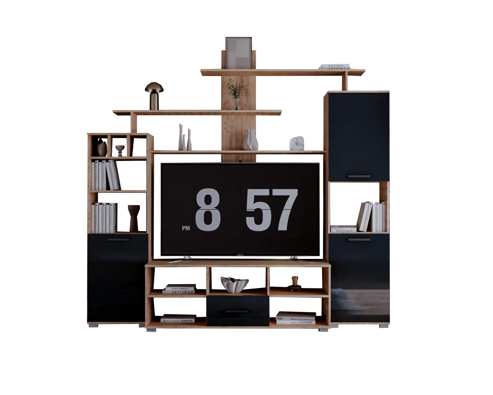 Set mobilier living realizat din PAL melaminat, cu design modern și compartimentare practică pentru zona TV și depozitare.